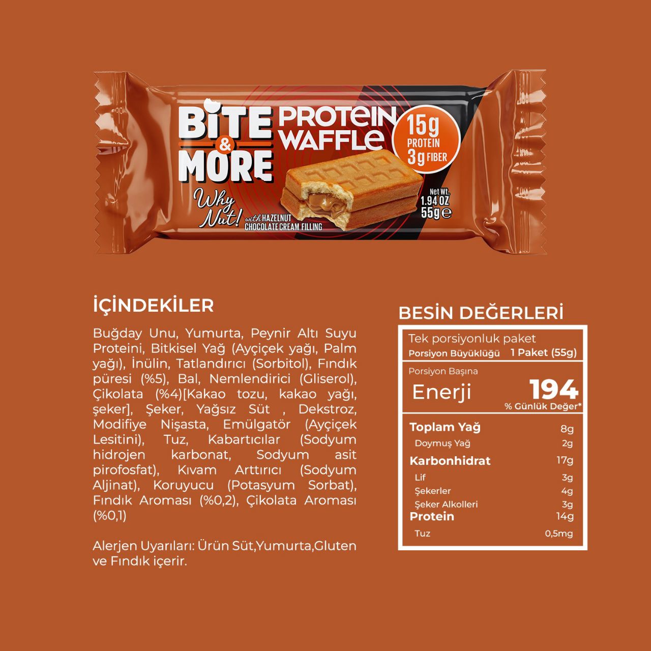 Bite & More Protein Waffle 55 GR - Hazelnut